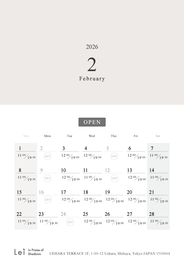 At Lei In Praise of Shadows Yoyogi-Uehara,